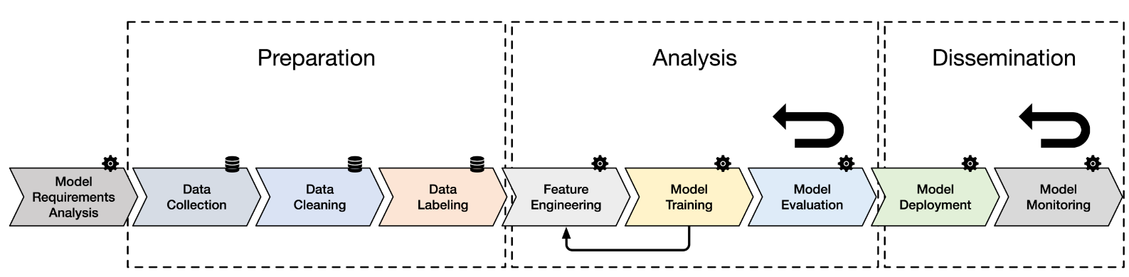 - System-first process: the system is developed first and then a model is integrated into the system. The data scientist receive concrete goals, derived from the system requirements